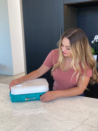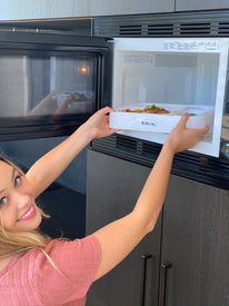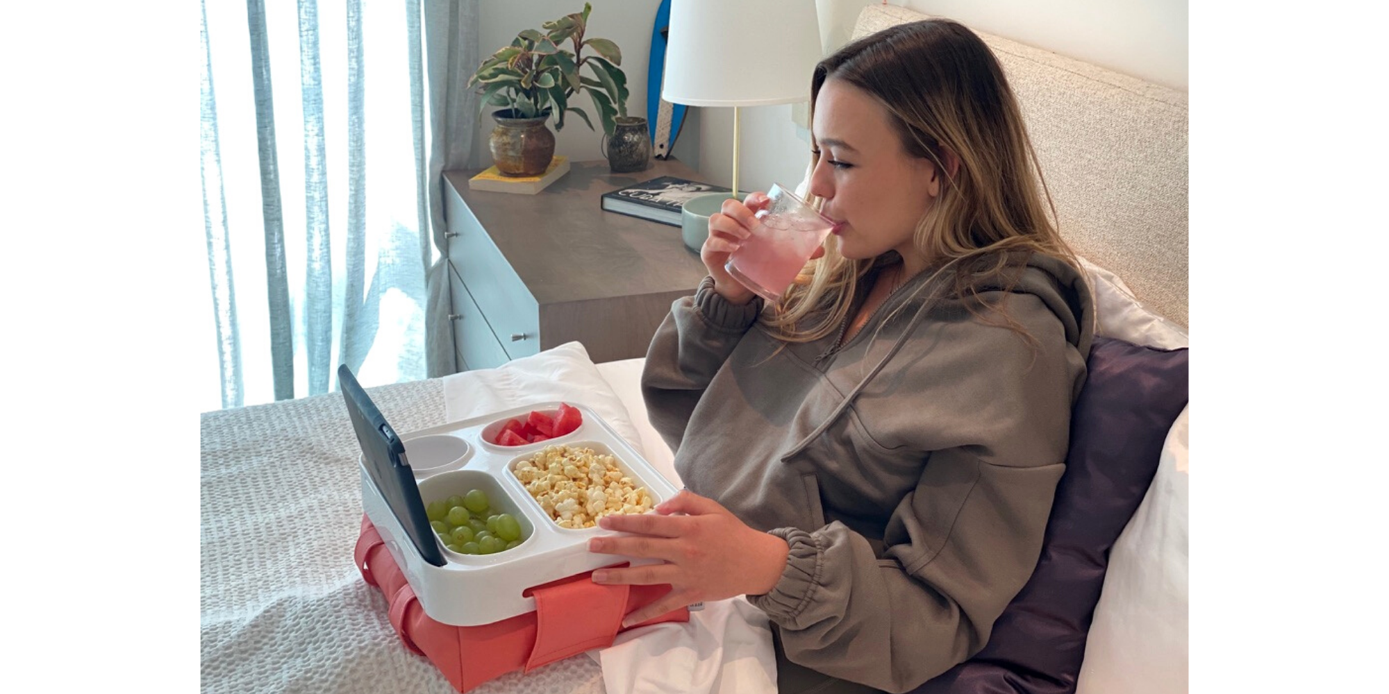 Our tray and lid have a molded-in recess to securely hold your mobile device while eating.