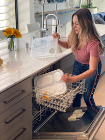 Just remove lap cushion for easy dishwashing and microwaving. Wipe lap cushion clean with damp cloth.