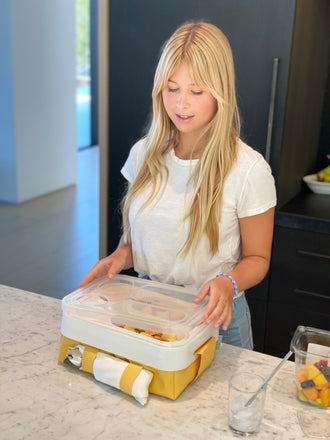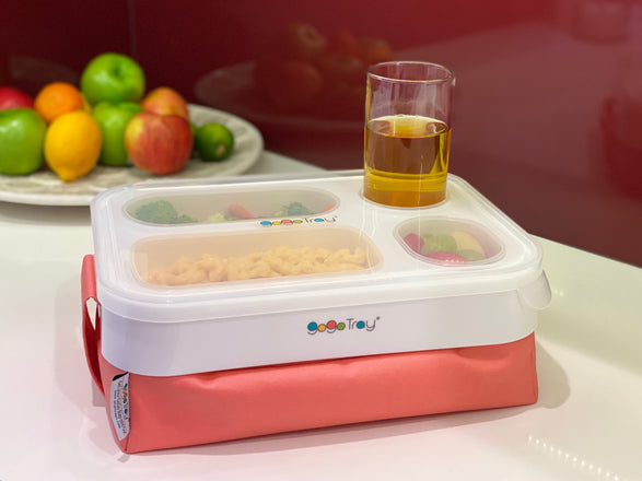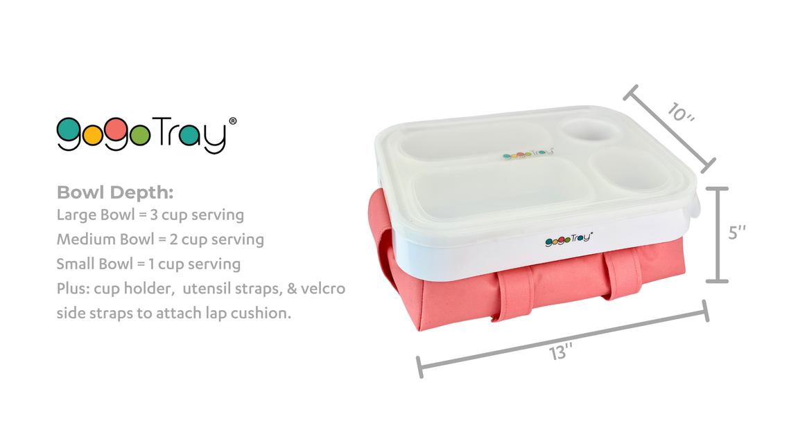Our tray has 4 deep, built-in bowls for tidy eating on-the-go.